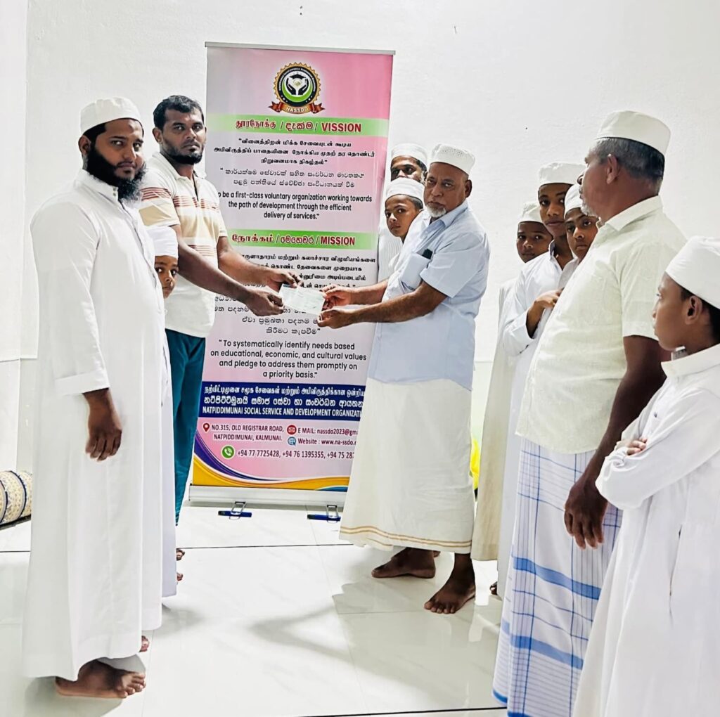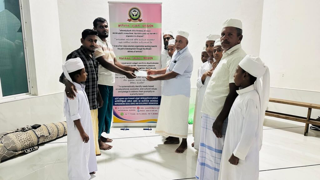 இதில் ரூபாய் 53,000.00 தொகையினைக் கொண்ட காசோலை, குறித்த பள்ளிவாசல் வளாகத்தில் வைத்து, எமது அமைப்பின் உயர் பீட உறுப்பினர்களால் அரபுக் கல்லூரியின் பள்ளிவாசல் நிர்வாகிகளிடம் உத்தியோகபூர்வமாகக் கையளிக்கப்பட்டது.